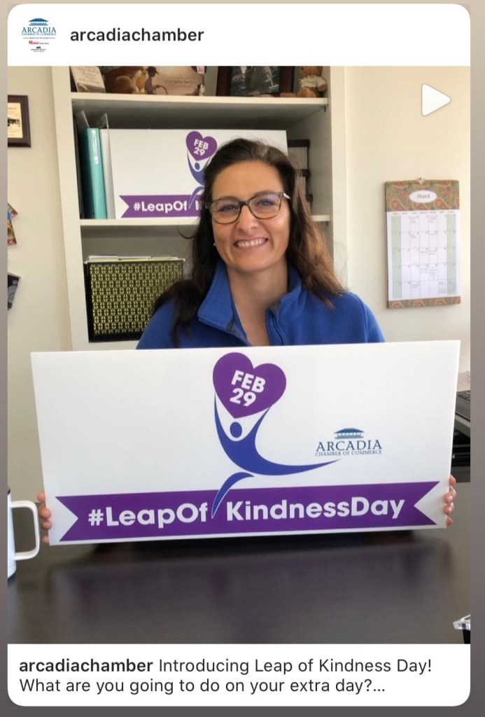 2/29/2024 is a day that will never be forgotten by me, our community or our Chamber Board! When we heard about Leap of Kindness Day we knew we wanted to participate and got to planning. We started the day with Chamber Board and community members at our local schools greeting the kids with high fives and motivational stickers (I think we enjoyed it more than they did). We started a “pay it forward chain” at our local coffee shop with $29 and others chipped in and many in the community enjoyed a free morning beverage and tips that day at the coffee shop were donated to our local 4H! Coffee was prepaid for the morning coffee drinkers at their two local hangouts by a kind individual. One of our local banks gave surprises to their 29th customers, another allowed each of their tellers to leave work to volunteer for 29 minutes at our local charity thrift store. We set up a table on our town square’s courthouse lawn with slips of paper that each had kindness quotes on them and on the blank side a space to write a hope/wish dream and then hang it on our “wish tree” (which was really a bush), it was so neet to see the colored paper flowing in the wind that day filled with wishes!