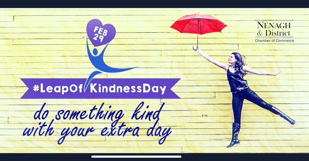 2028 is a Leap Year, and this means we all get one extra day on Thursday, February 29, 2028. What will you do with your extra day? Our idea – – use your extra day to do something kind for someone else and encourage everyone in your family, workplace, and community to do the same.