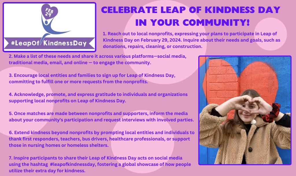 Please use the Leap of Kindness Day logo in all of your promotions & the hashtag #leapofkindnessday